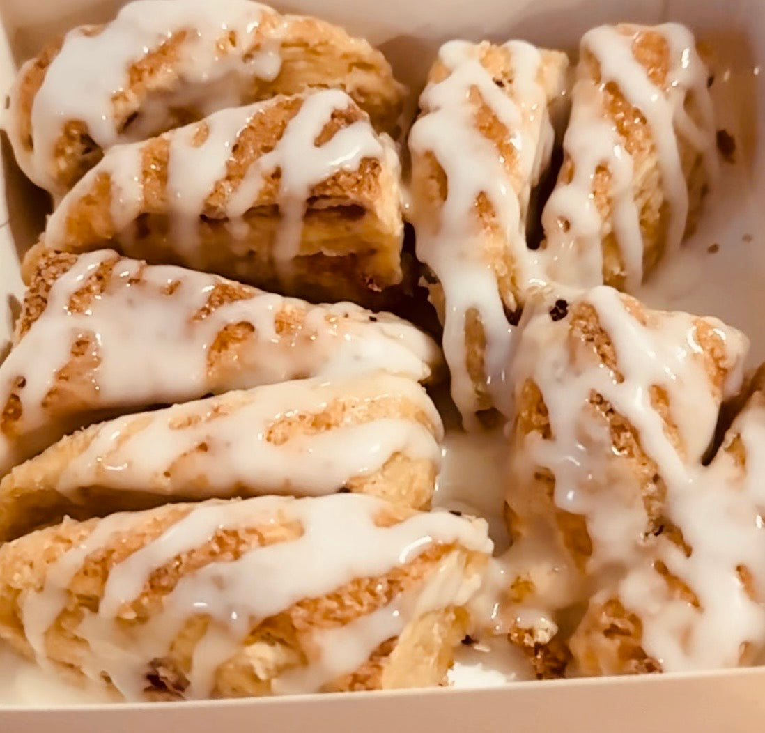Buttery mini sourdough scones filled with strawberry and lemon, topped with a golden crumb and drizzled with a light glaze. Soft, flavorful, and baked in small batches for maximum freshness and texture.